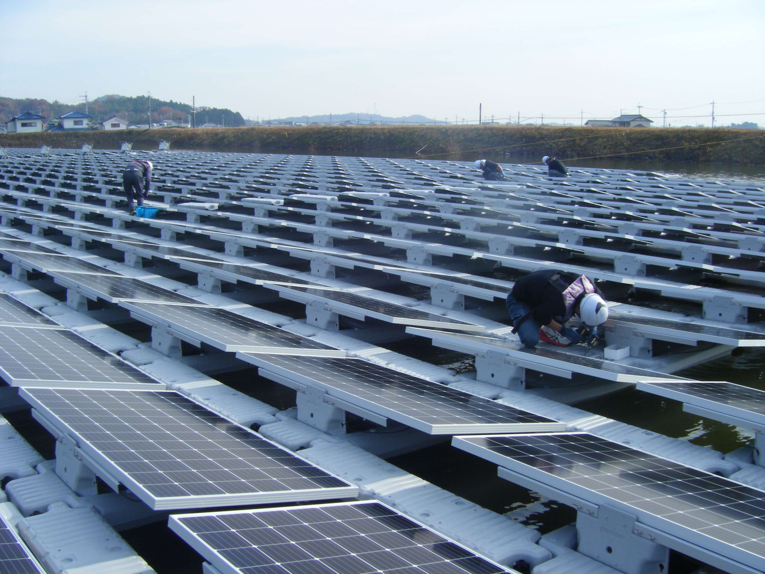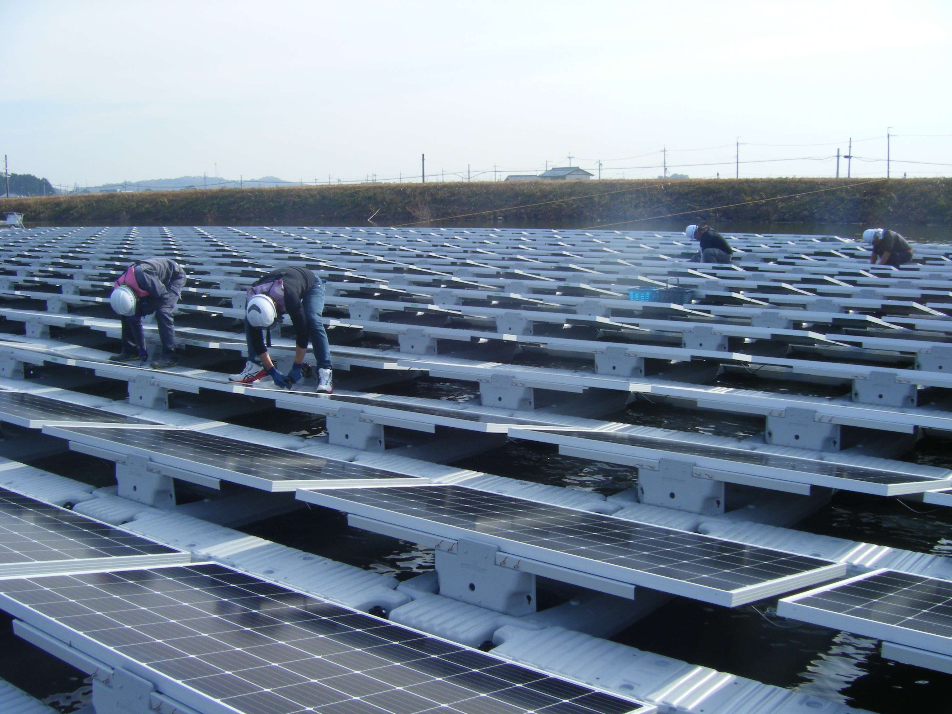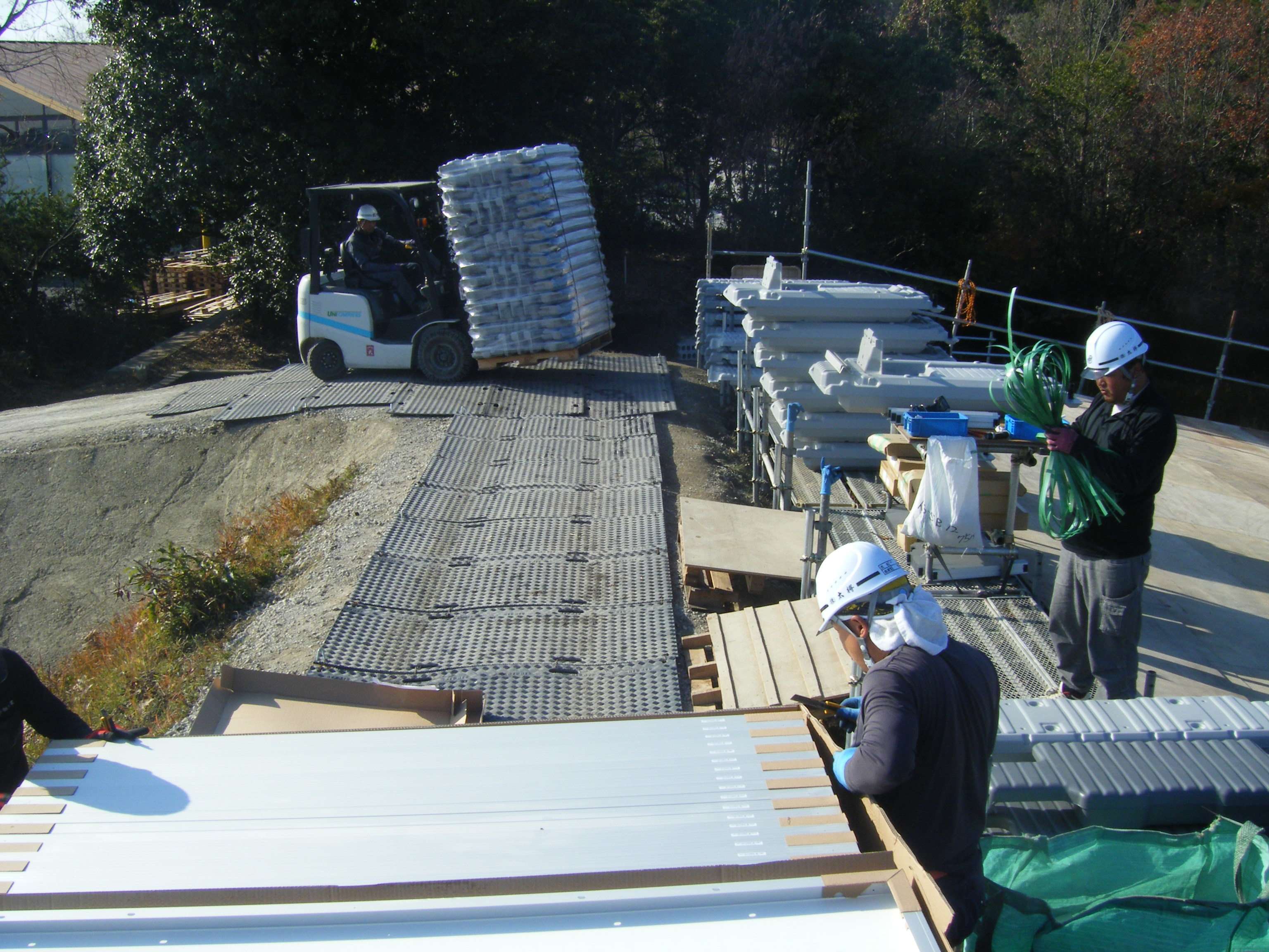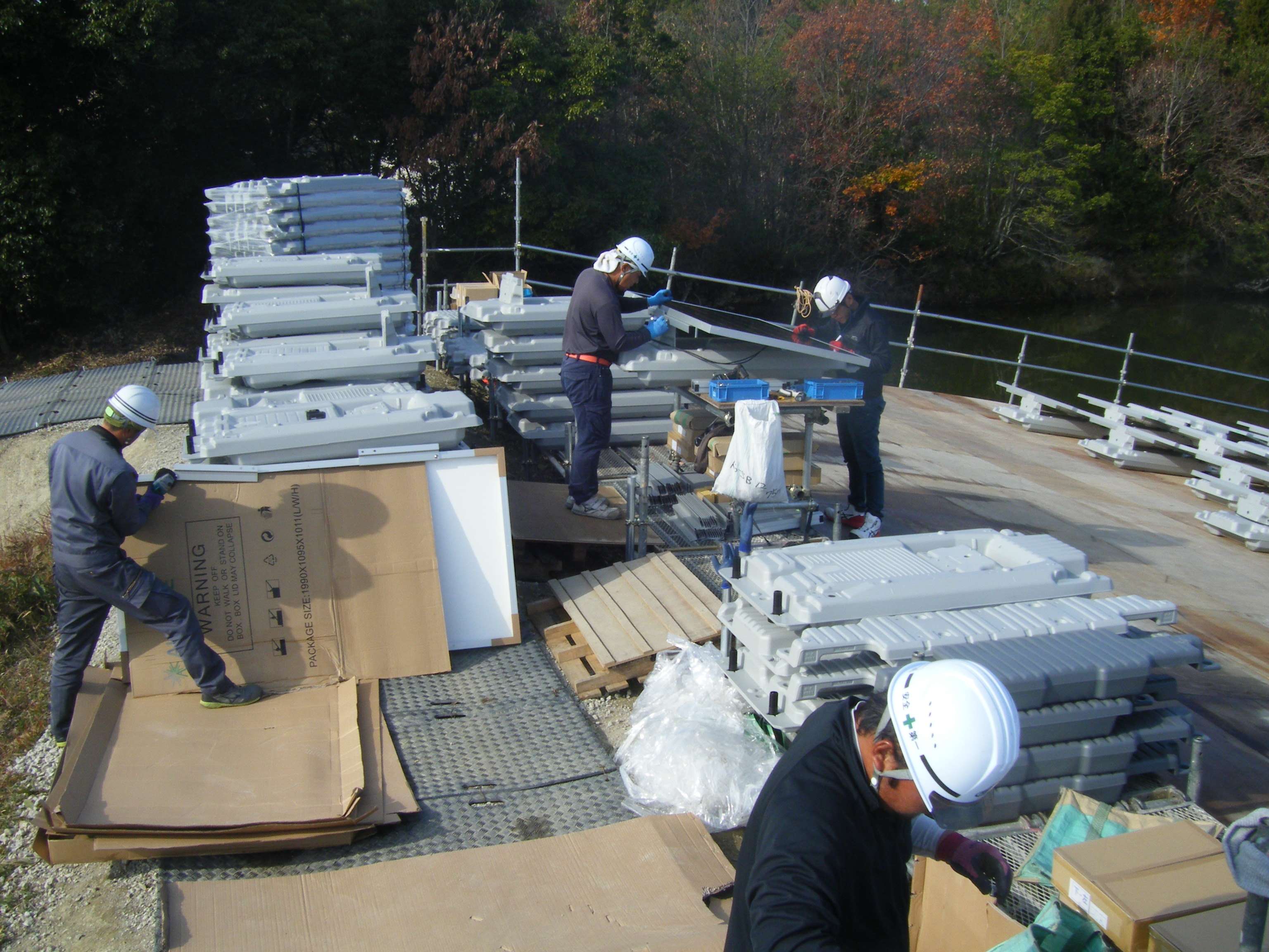 モジュール フロート組立・フロート連結・整線・アンカー取付